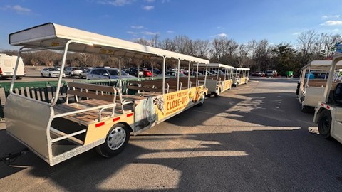 TRAM6259 – (3) Sets – One Harlan Tow Tug & (3) Executive Tram Trailers per Set